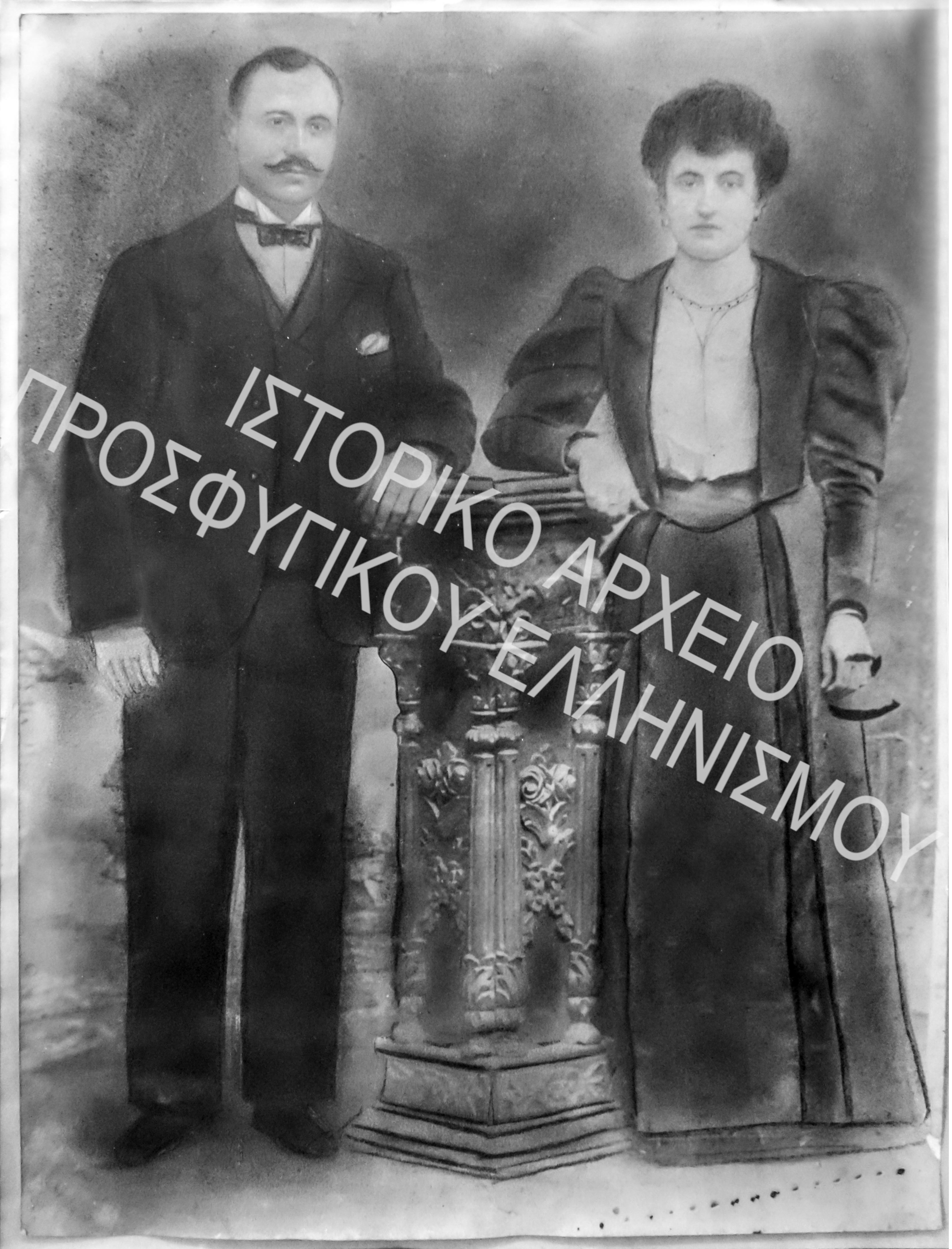 (Συλλογή Νίκου Γρηγοριάδη, Καβάλα, Ελλάδα). Anastasios Nystazos and Anastasia Baka. Photo corrected with pencil. (Nikos Grigoriadis Collection, Kavala, Greece). |